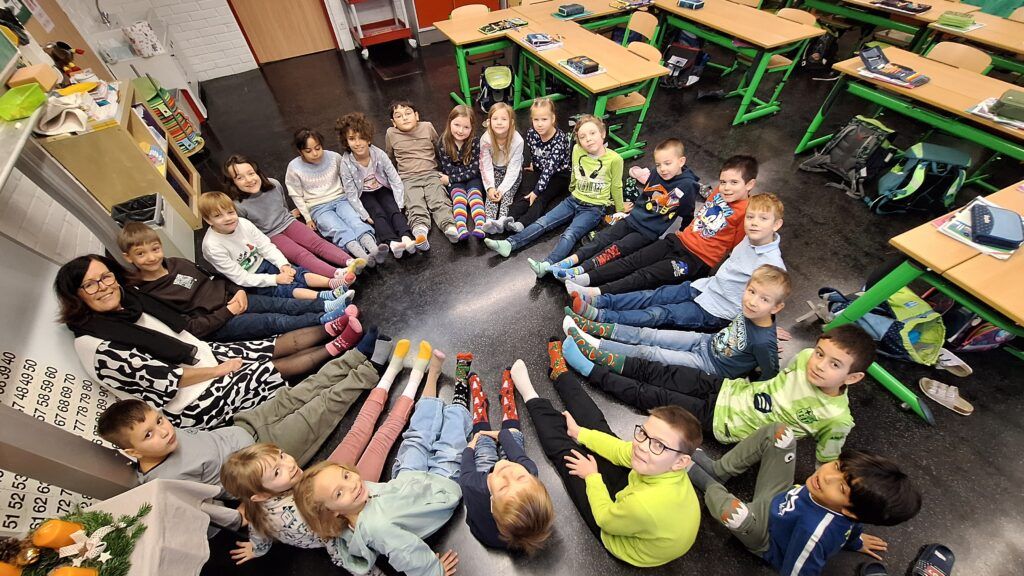Unser Adventkalender gab uns eine bunte Aufgabe. Für den „Tag der bunten Socken“ ziehen wir natürlich viele bunte Socken an. Das geschah genau am Welttag der Socken, also am 4.Dezember.