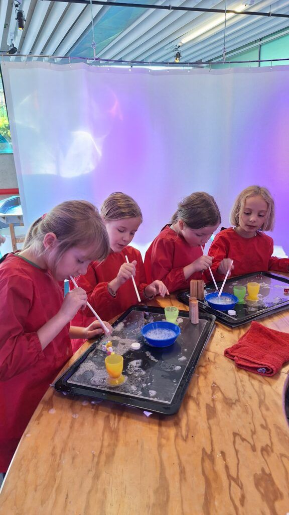 So riesig haben wir uns Seifenblasen nicht vorgestellt. Im Kindermuseum Frida & Fred gab es viele Möglichkeiten, Seifenblasen zu machen. Außerdem mussten die Kinder Unmengen an Schaum erzeugen. Spannendes gab es auch bei Prinzessin Forscherixa zu erleben.